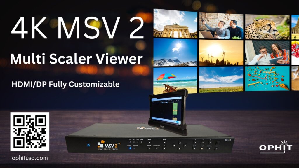 MSV2 is an advanced video processor for multimedia presentations. It is a video signal processing device that can output 4 input video signals to one video display device and provides 4 screen output modes. 4ch Inputs of MSV2 have 2 HDMI ports and 2 selectable ports (HDMI or DisplayPort), the user can select the input video the DisplayPort 1.2a or HDMI 2.0 Basically, it supports various output resolutions including up / downscale and supports seamless channel change. Features